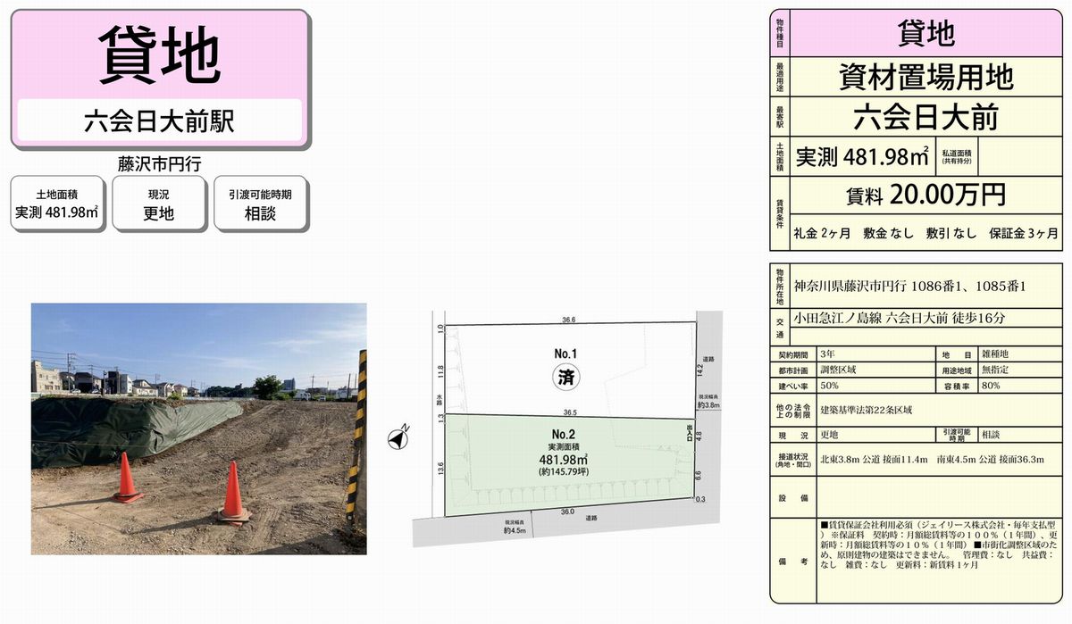 藤沢市円行1086-1(六会日大前駅)六会日大前 貸地2