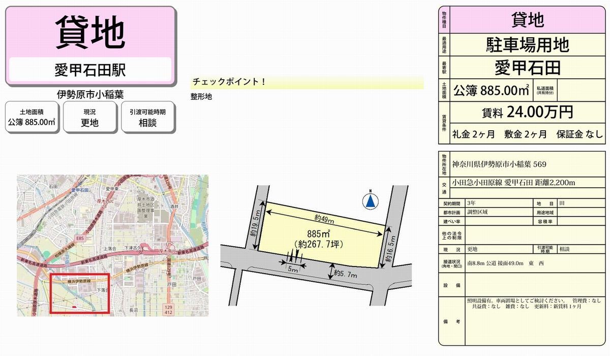 物件名 | 愛甲石田 貸地 |