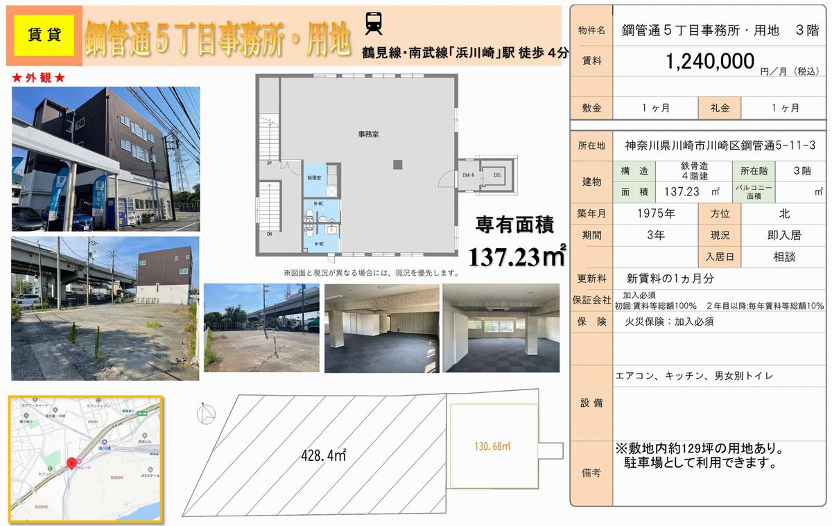 神奈川県川崎市川崎区鋼管通5-11-3 (浜川崎) 浜川崎 貸地 詳細データ