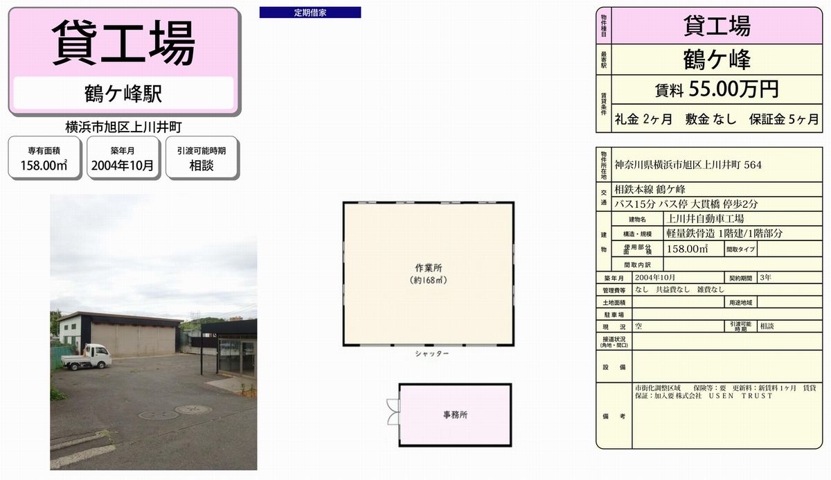 神奈川県横浜市旭区上川井町564 (鶴ヶ峰) 鶴ヶ峰 工場 詳細データ