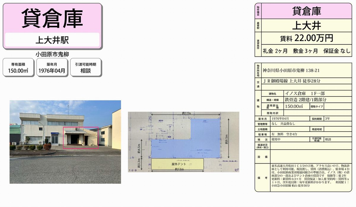 神奈川県小田原市鬼柳138-21 (上大井) イノス倉庫 詳細データ