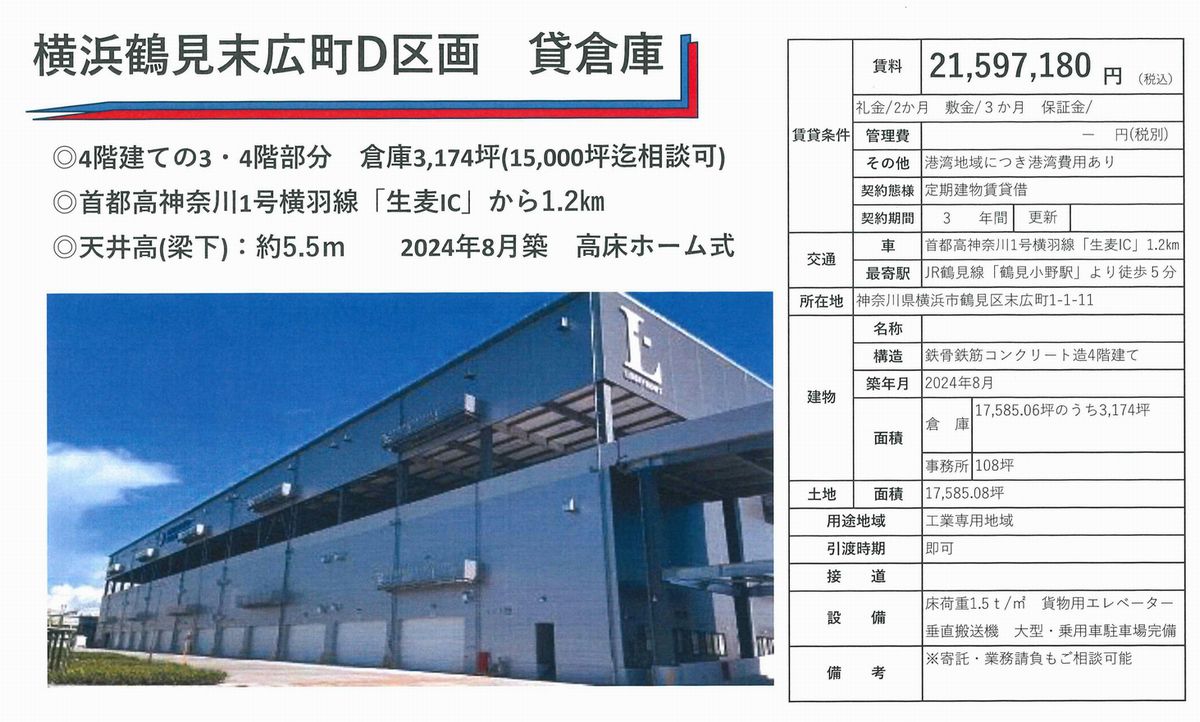 | 物件名 | 鶴見小野 倉庫D 3-4F部分 |