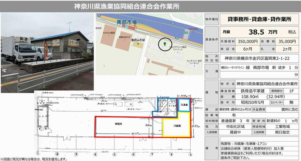 神奈川県横浜市金沢区富岡東2-1-22 (南部市場) 南部市場 倉庫 詳細データ