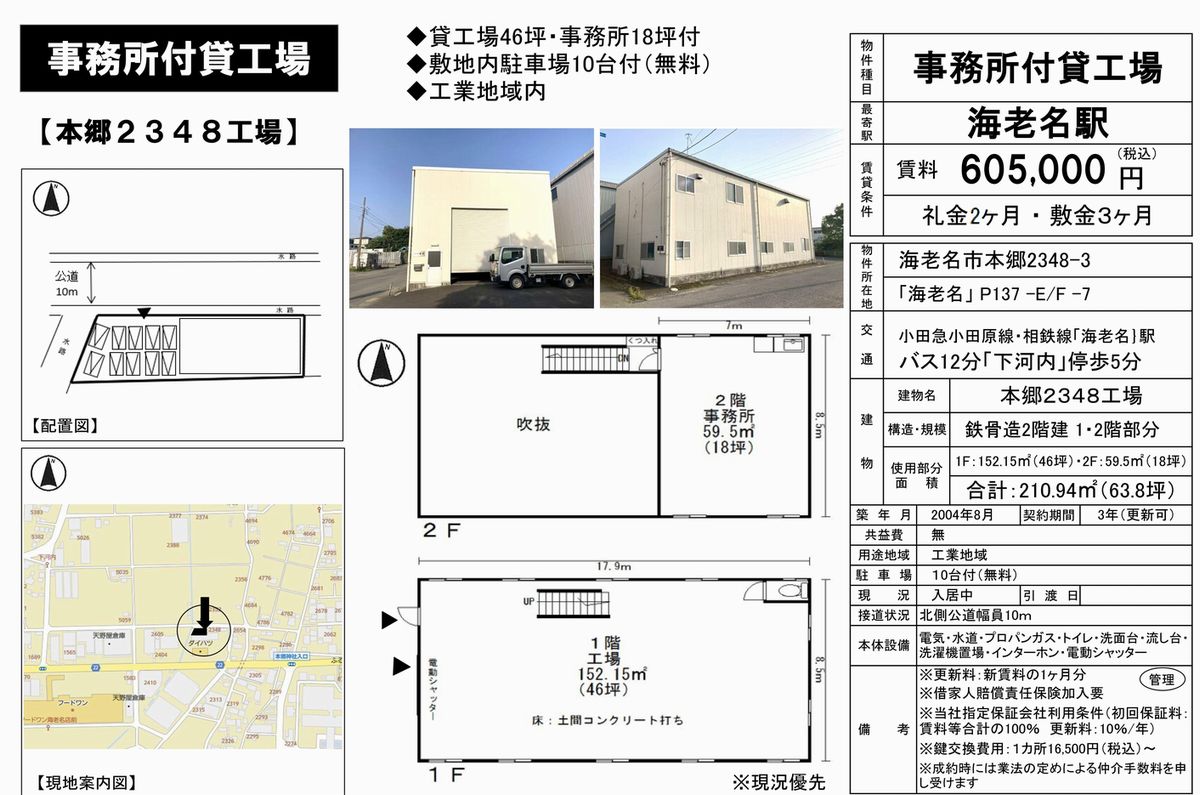 神奈川県海老名市本郷2348-3 (海老名) 海老名 工場 詳細データ