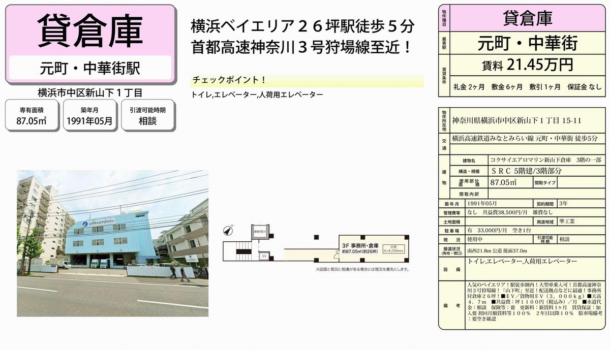 神奈川県横浜市中区新山下1-15-11 (元町・中華街) コクサイエアロマリン新山下 詳細データ