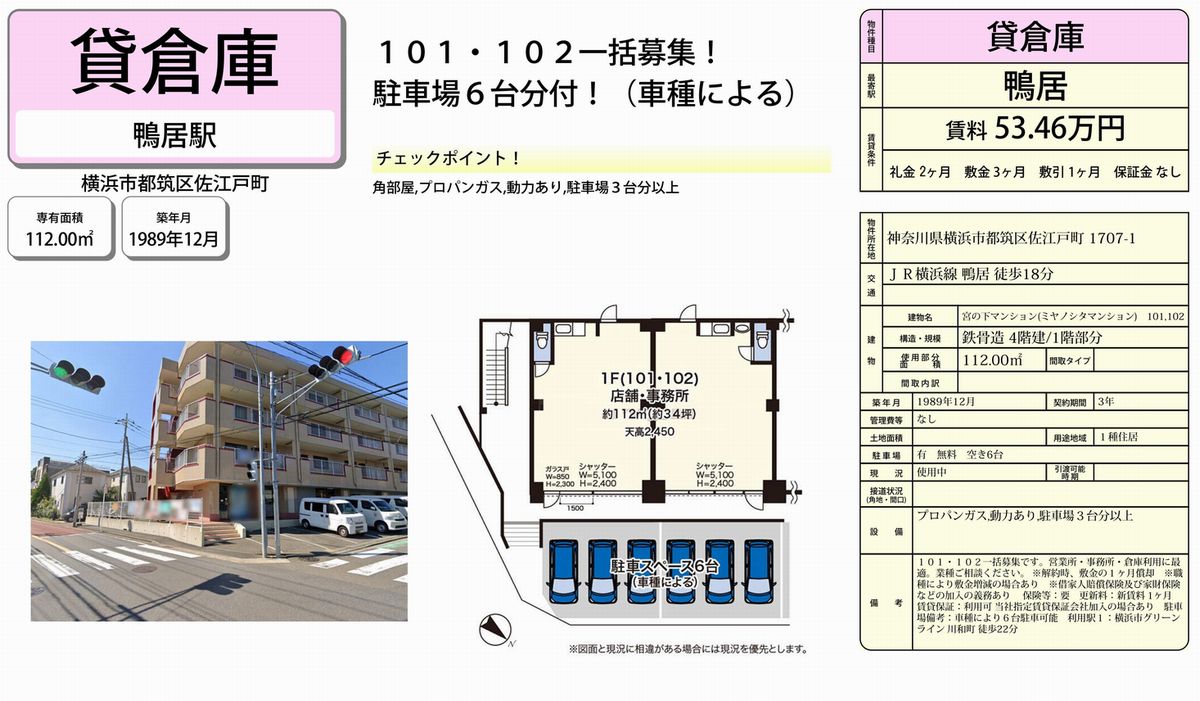 この物件の物件番号は6042です。お電話(03-6260-658603-6260-6586)でお問合せの際は物件番号をお知らせ下さい。「神奈川倉庫ドットコムを見て」とお伝えいただくと話がスムーズに進みます。※不動産業者様へのご紹介は不可です。