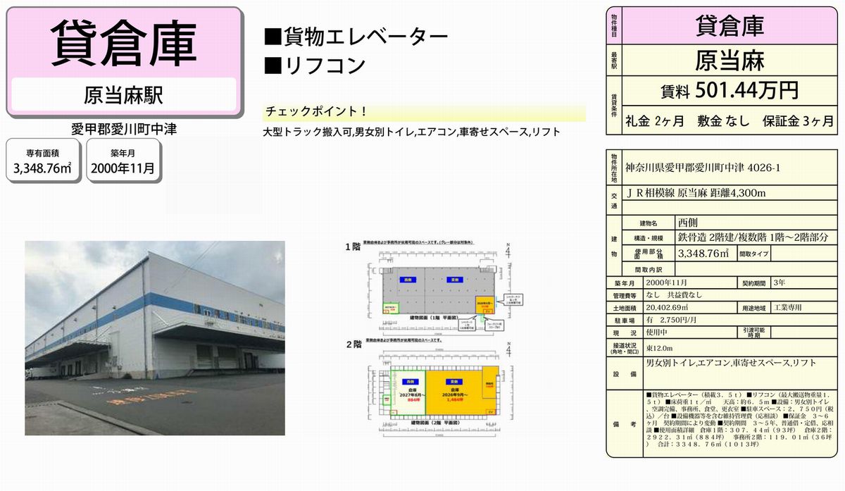神奈川県愛甲郡愛川町中津4026-1の貸倉庫・貸工場・賃貸土地を探すなら中小企業を応援する神奈川貸倉庫.comでニーズに合った物件を検索してください。神奈川県愛甲郡愛川町中津4026-1の事務所付貸倉庫、クレーン付、店舗倉庫、工業専用地域等、何なりと営業担当者にお申し付けください。その他、神奈川県愛甲郡愛川町中津4026-1の貸し倉庫・貸し工場・賃貸土地を貸したい方には無料にて査定・掲載いたしますので当社のオーナーサポートシステムをご利用ください。神奈川県愛甲郡愛川町中津4026-1で貸倉庫・貸工場・賃貸土地を契約のテナント様には貸し倉庫・貸し工場の設計変更、造作のご相談も承ります。貸倉庫・貸工場・賃貸土地の移転・新規開設は神奈川エリア最大級、新着情報満載、神奈川貸倉庫.com!